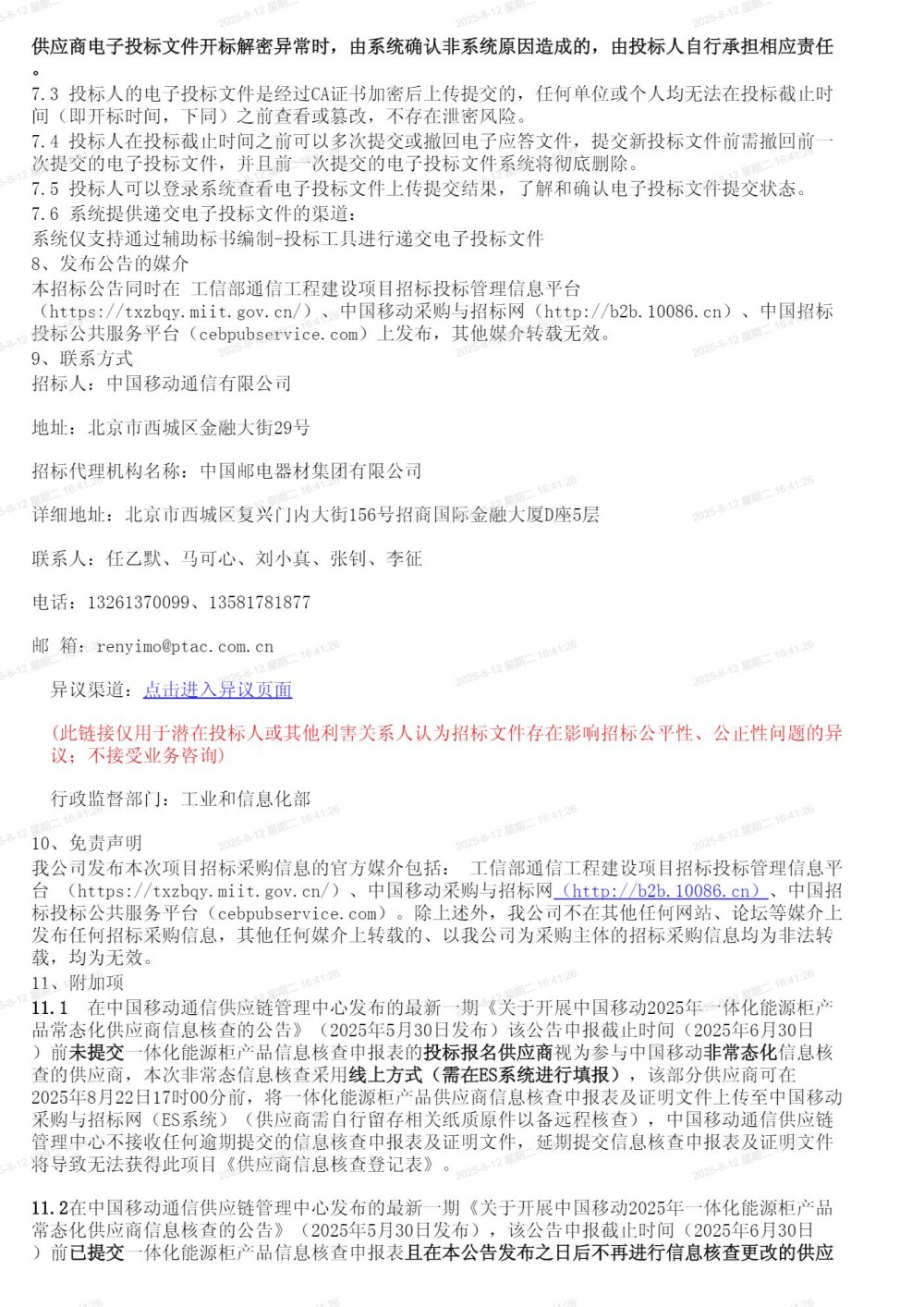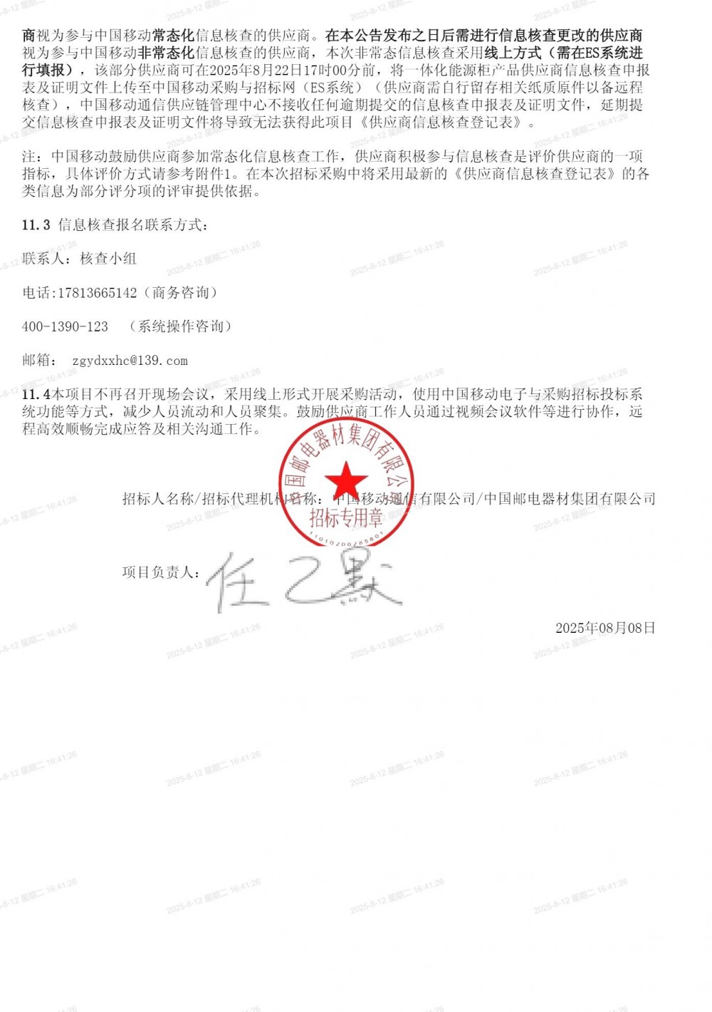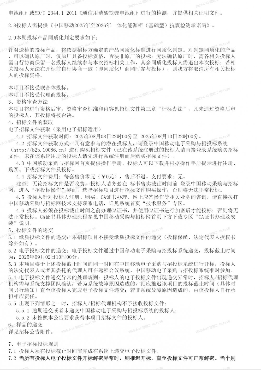 8月8日,中国移动发布2025-2026年能源柜集采招标,预估采购5000套基础型一体化能源柜。而且招标明确,将进行同质化判定,仅原厂具备投标资格。无法确认原厂时,需各相关投标人需自行协商保留一名投标人继续参与,其余同质化投标人需退出本次投标;若相关投标人无法在开标前自行协商一致,则中国移动将取消所有相关投标人的投标资格。