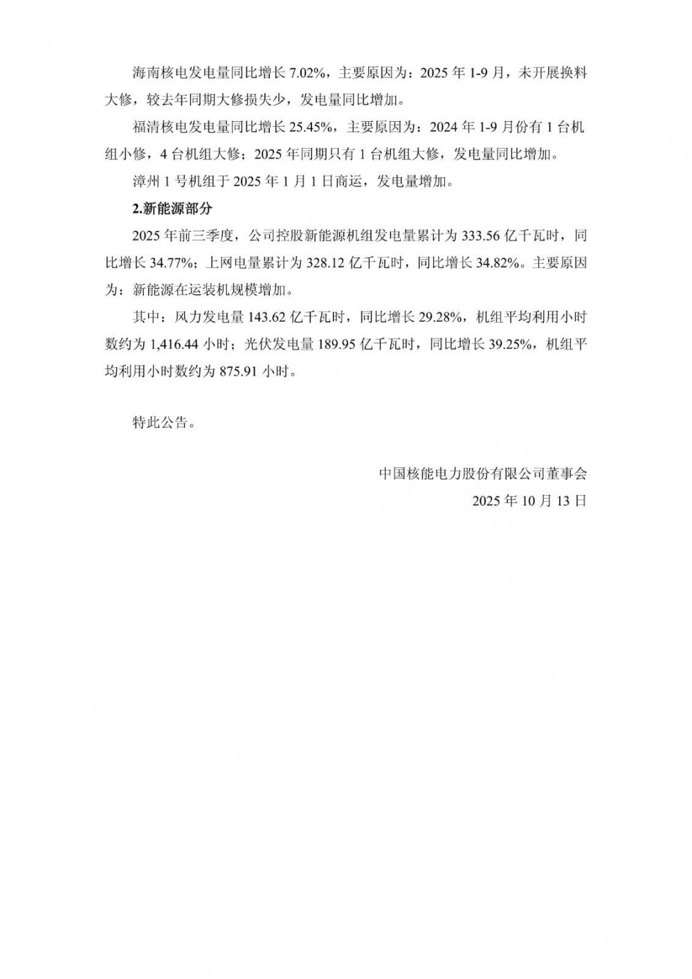 近日,中国核电发布公告称,截至2025年9月30日,公司控股独立储能电站165.10万千瓦。